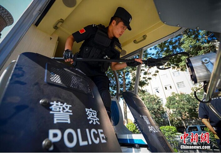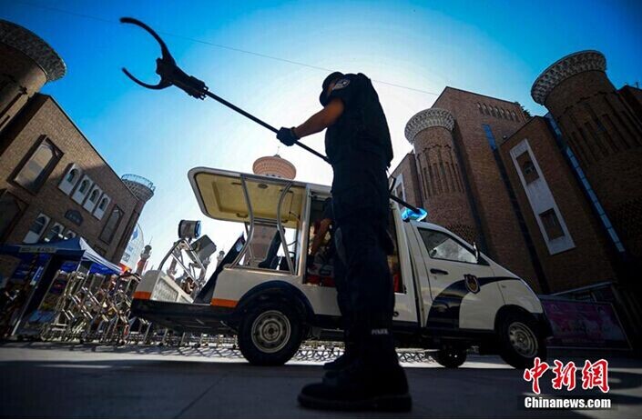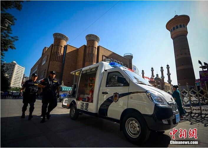 8月28日,一輛新型反恐電動(dòng)巡邏車亮相新疆首府烏魯木齊市國(guó)際大巴扎,該車由電力驅(qū)